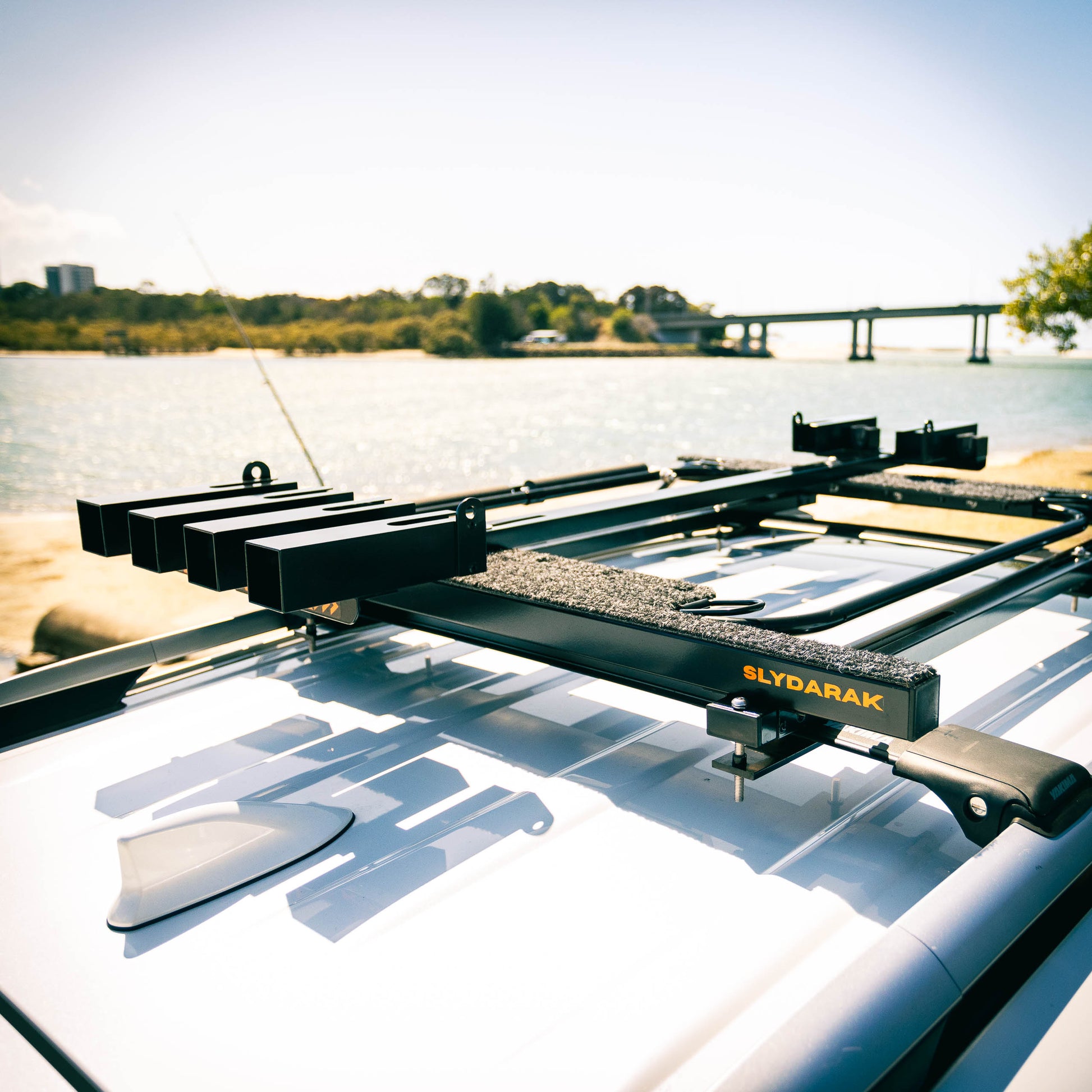 The SlydaRak Fishing Rod Holder is the perfect addition to your SlydaRak or will fit directly onto your roof rack.